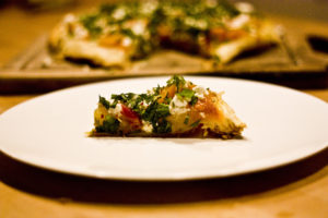 Feta, 11 TL Pul Biber über die Tarte streuen.