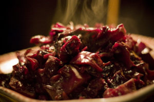 15001500 g Rotkohl vorbereiten: Die äußersten Blätter entfernen. Dann längs vierteln, Strunk entfernen und in grobe Stücke schneiden. Wer den Rotkohl lieber weicher mag, kann ihn auch feiner schneiden.